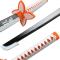 Avec sa lame en bois de bambou entièrement peinte, son Tsuba en forme de papillon orange argenté et son Tsuka encordé blanc avec simili imitation peau de raie orange, le katana du pilier de l'insecte est ici parfaitement reproduit.
