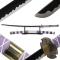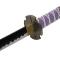 Le Tsuka est en bambou, recouvert de similicuir violet et enroulé de lacets blancs, tandis que la Tsuba est en plastique, proche du modèle du katana Yubashiri.