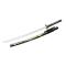 Le manche du katana, décoré avec goût, assure une prise en main agréable. Bien que la lame ne soit pas affûtée, la qualité des matériaux utilisés et l'attention portée aux détails font de ce katana une pièce de collection estimée. Le fourreau verni enveloppe le tout avec élégance, ajoutant une touche finale à cet objet précieux.