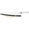 Acier : Acier au carbone Composition du manche : Peau de raie/coton Poids : 1200 Longueur lame (mm) : 685 Couleur lame : Blanche Profil de lame : Katana Couleur manche : Blanc Tranchant : Lisse Ouverture Sécurité : Double garde fixe Port : Fourreau