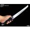 On trouve sa genèse dans un Buck qui est lui même introuvable .Il a pris de l'embonpoint: lame plus grande plus épaisse et surtout une prise en main améliorée grâce à des côtes dans une matière plastique d'apparence très robuste. Je pense qu'on peut se raser tel quel avec ce couteau tant l'affûtage a été soigné...RARE .J'ai donc beaucoup utilisé le "cadet" et une ou deux fois celui-ci dans sur des poissons assez gros(2/3 kilos) :efficace. Passer son auriculaire dans l'anneau assure sécurité et précision :les arêtes ne le rebutent pas pas plus que les grosses vertèbres. J'utilise aussi le bird and trout sur le gibier petit et moyen (chevreuil pour le plus gros) au -dessus on a besoin pour le désossage d'un couteau plus puissant peut-être le" bird and game"fera-t-il l'affaire ?L'affûtage comme tous les couteaux de qualité réclame des pierres de qualité cela va de soi, mais le profil de la lame prête à des finitions sur des grains 10000 genre Coditel blanche sans hésitation.
