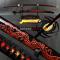 Véritable Katana japonais en damas rouge et noir, Acier plié 1000 couches. Livré avec son Certificat d'authenticité.