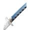 Le saya, ou fourreau, est plus qu'une simple protection pour la lame ; c'est une oeuvre d'art en lui-même. Fabriqué en bois, il est recouvert d'un tissu aux motifs traditionnels japonais qui ajoutent une dimension culturelle et artistique à cette pièce exceptionnelle. Son blanc éclatant contraste magnifiquement avec la lame bleu, créant une esthétique élégante et épurée. Ce design épuré, sans kurikata, témoigne d'une modernité subtile tout en rendant hommage à l'artisanat japonais.