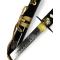 Ito et sageo dorées et saya noire. Lame et saya avec gravures.