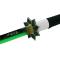 Le Tsuka, sculpté dans un bois dur, est enrobé d'un cordage synthétique vert et blanc, avec une finition qui laisse entrevoir un same en simili de couleur noir.
