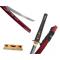 Ce sabre tranchant est superbe avec un fourreau rouge bordeaux aux motifs incrustés de nacre branche de cerisier et colibri.