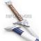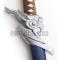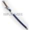 Superbe reproduction de l'épée de Yasuo, le disgracié, un des champions de League of Legends. La lame en acier stainless 440. La garde en acier richement décoré. Manche en imitation peau de raie blanc est recouvert par du coton tressé. Livré avec son fourreau en bois décoré.