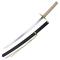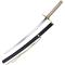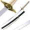 Vous retrouverez sur ce sabre une lame en acier inoxydable 440 non tranchante et non coupante, un Tsuba en métal doré et noir correspond trait pour trait à celui de l'Animé ainsi qu'un Tsuka en bois recouvert d'un cordage synthétique écru beige.