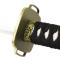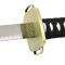 La tsuba, ornée de motifs complexes et symboliques, ajoute une touche d'élégance tout en protégeant la main du porteur.