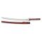 Sa lame en acier carbone, trempée à l’huile, privilégie une coupe franche sur un seul bord. La poignée de 29,50 cm avec cordage rouge sur bois assure une prise en main stable sur les mouvements longs. L’ensemble est présenté dans un coffret en bois et livré avec des accessoires dédiés au transport et à l’entretien.