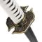 Vous retrouverez donc une lame en bois magnifiquement décorée, une Tsuba fidèlement reproduite ainsi qu'un Tsuka en bois recouvert de cordage synthétique blanc laissant entrevoir un beau Same de couleur noir.