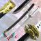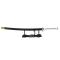 Les éléments de transition entre la lame et le manche, le Kashira (extrémité du manche) et le Kojiri (extrémité du fourreau), sont réalisés en métal doré.