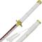 Le fourreau blanc laqué, décoré de motifs dorés et d’un cordon assorti, reflète toute l’élégance de cette arme mythique. Sa garde dorée et ses finitions détaillées rappellent fidèlement le sabre de Kozuki Oden, faisant de ce katana une pièce incontournable pour tout fan.