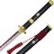 Le fourreau noir brillant est décoré de motifs dorés et d’une corde rouge, rappelant fidèlement le style du sabre original. La garde dorée et la finition soignée apportent une vraie touche d’élégance.