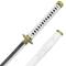Superbe réplique du katana Ichimonji de Roronoa Zoro dans One Piece, avec lame équipée de LED lumineuses pour un effet spectaculaire. Son fourreau blanc décoré et sa poignée tressée en blanc et noir en font une pièce fidèle à l’anime.