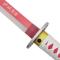 La garde décorée de fleurs, la poignée blanche tressée avec motifs roses et les inscriptions japonaises sur la lame rappellent fidèlement le sabre de la jeune pourfendeuse de démons. Avec son design soigné et son effet lumineux unique, ce katana est un incontournable pour tout fan de Demon Slayer.