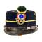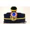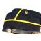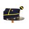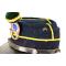 En drap noir, passepoils en cordonnet jonquille. Jugulaire à double coulisse en cuir noirci, maintenue par deux boutons grelots en argent timbrés du corps de chasse. Ventouses latérale d'aération en cuivre tombac peints en noir. Coiffe intérieure en tissu, étiquette disparue, bandeau de transpiration en cuir noirci, bandeau circulaire en plastique postérieur pour le maintient. Insigne de cérémonie avec cocarde aux couleur nationale, corps de chasse en laiton et pompon en laine bicolore verte et jaune.