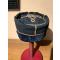 Képi d'adjudant de sapeurs-pompiers, vers 1910-1914, en drap bleu marine, bandeau noir, cordonnets dorés à chevrons rouges, Intérieur satinette jaune