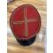 Modèle réglementaire avec calot rouge, passementerie dorée (nœud hongrois) et turban en drap gris clair. Petite grenade dorée en façade, typique des officiers d’infanterie de la période. Visière en cuir noir d’origine. Intérieur : soie verte, couture d’origine