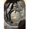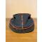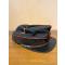 képi troupe en drap noir à bandeau en velours brodé des haches croisées et de la grenade en fil écarlate, cordonné écarlate, visière rectangulaire, coiffe en satin noir à bandeau en cuir.