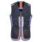 Gilet ball trap, filet 100% polyester, empiècements 65% polyester 35% coton. Modèle ambidextre. Epaulettes de tir matelassé avec coussinet antichocs amovible, 1 poche poitrine, 4 grandes poches avant pour munitions, pattes dorsales d'ajustement, grande poche arrière, attache latérale pour le casque, pinces dorsales pour accrocher un dossard.