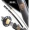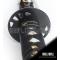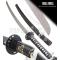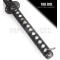 Magnifique katana de Bill tiré du film Kill Bill de la marque Master Cutlery. Katana pouvant être utilisé pour l'entraînement à la coupe. Fabriqué d'une seule pièce (Full Tang Construction). Lame tranchante en acier type Maru avec gravure a sa base. Le manche en peau de raie recouvert de coton tressé. Fourreau en bois laqué noir avec gravure. Livré avec son support en bois.