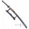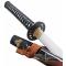 Magnifique Katana en Bois de la mariee dans le film KILL BILL. Katana pouvant servir au maniement. Lame en bois peint. Symbole a la base de la lame imprime. Gravure sur le fourreau du symbole de Hattori Hanzo ainsi que d'une lionne representant symboliquement Beatrix Kido. Longueur totale : 103cm Longueur de la lame : 72cm Poids epee et fourreau : 625grs Poids epee : 360grs Livre avec : -Presentoir en bois -Housse de protection.