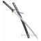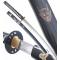 Magnifique Katana practical de Bill dans le film KILL BILL. Katana forge pouvant servir a la coupe. Lame Maru 1045 en acier dur Full Tang. Gravure a la base de la lame d'une tete de demon. Gravure sur le fourreau du symbole de Hattori Hanzo ainsi qu'une tete de demon representant symboliquement le personnage de Bill. Longueur totale : 105cm Longueur de la lame : 72cm Poids epee et fourreau : 1300grs Poids epee : 1060grs Livre avec : -Presentoir en bois -Housse de protection.