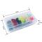 Matériel: Boîte en plastique 21 x 10.7 x 4.2 cm et perles de pêche, crochets en acier à haute teneur en carbone, émerillons en laiton, mousqueton en acier inoxydable, plombs.