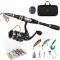 Ensemble canne à pêche et moulinet télescopique avec ligne de pêche, kit de leurres de pêche pour eau salée ou eau douce, et sac de transport.
