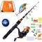 Kit Canne à Pêche Télescopique 160 cm avec Moulinet et  Leurres Souples pour la Pêche en Eau Douce