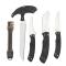 Couteau à désosser + Couteau à dépecer + Lame à éviscérer + Lame de scie à os + Outil d'affûtage