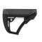La crosse réglable Daniel Defense est construite à partir d'un mélange exclusif de polymères infusés dans du verre et finie par un surmoulage en caoutchouc doux au toucher à des endroits stratégiques. La crosse est formée avec précision pour les extensions de récepteur mil-spec afin d'avoir très peu de jeu vers l'avant ou latéral, ce qui est si commun dans beaucoup d'autres crosse. Cela élimine le besoin d'un dispositif de tension ou d'un verrouillage par friction. Le résultat est une crosse durable qui donne au tireur une soudure de joue confortable et répétable et un contrôle sans précédent de l'arme à feu. La crosse peut être utilisée avec l'un des deux buttpads inclus ou sans aucun buttpad afin d'adapter la carabine à l'équipement porté par l'opérateur. Les butées sont disponibles en deux tailles : une forme convexe plus épaisse (0,8") et une forme concave plus fine (0,5"), conçues pour éviter les accrochages lors du port de la carabine. Des points d'attache QD à rotation limitée sont intégrés des deux côtés de la crosse pour une connexion ambidextre à la bretelle.