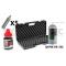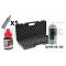 Quand vous recevez votre arme, elle est livrée sans consommable, dans une boite en carton, avec ce kit, vous pouvez, la protéger avec la mallette, l'entretenir avec la burette d'huile siliconé et ainsi augmenté la durée de vie de votre arme et des joints qui la composent.