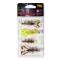 Nouveauté 2023 : Le kit leurres souples Micro Critters Ultra UV Mixed Colour Loaded de la marque Fox Rage, constitué de 4 leurres montés, d'une longueur de 5cm.