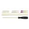 Le kit comprend une baguette flexible recouverte de caoutchouc d'environ 84 cm, permettant un nettoyage efficace du canon. Il contient également plusieurs brosses de nettoyage (laiton, nylon, coton) et des accessoires comme des chiffons et un tournevis avec embouts, adaptés aux deux calibres.