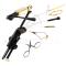 Il est constitué des éléments suivants : - étau PRO - ciseau - porte bobine - pince à hackle - outil passe fil - aiguille à dubbing - whip finisher.