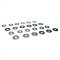 24 shims répartis en 4 épaisseurs : 0,1 mm, 0,15 mm, 0,3 mm, et 0,5 mm.