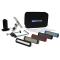Kit d'affûtage Accusharp composé de 5 pierres à affûter avec poignée anti-dérapante en ABS, un support de serrage et un guide d'affûtage avec plusieurs angles d'affûtage possible. Fixation facile des couteaux sans outils. Livré avec sacoche de transport en Nylon.
