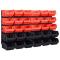 Kit de bacs de stockage et panneaux muraux 32 pcs rouge et noirOrganisez votre garage, salle de bricolage et atelier grâce à cet ensemble de panneaux muraux et de bacs de rangement. Le support fonctionnel avec boîtes empilables offre de nombreuses possibilités de stockage pour les petits objets tels que vis, clous, écrous, douilles, ferrures, etc. Les 2 panneaux muraux solides peuvent contenir 30 boîtes, qui peuvent être étiquetées, pour une meilleure vue d'ensemble de toutes les petites pièces. Vous pouvez sortir les bacs de rangement individuellement et les empiler les uns sur les autres. L'ensemble de supports est extensible et se monte facilement sur le mur d'un garage ou d'une cabane. Ce kit de bacs de rangement peut être agencé en fonction de vos besoins. ,