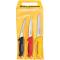 Longueur de la lame : 13 cm (poignée noir) ; 15cm (poignée rouge) ; 18cm (poignée jaune)