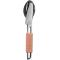 Comme vu précédemment, ce set de couverts Primus inclut les trois couverts de base, c'est-à-dire un bon couteau, une bonne fourchette et une bonne cuillère. Le tout bénéficie d'une construction 100% acier inoxydable sans faille. Faciles à ranger même dans une popote de trek, ces couverts Leisure Cutlery Set se rangent tous ensemble dans un petit support en silicone (manchon), lequel résiste aux températures extrêmes (60°C max). Le format de l'ensemble est tout à fait intéressant avec une longueur totale de 18 cm, une largeur totale de 3,5 cm et une profondeur totale de 2 cm. Notez que le coloris rose saumon permet de distinguer facilement votre kit, évitant les mélanges avec d'autres kits.