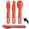 Le grand avantage du set de couverts Sea to Summit Passage, c'est son matériau de fabrication : il est entièrement fabriqué en polypropylène renforcé de qualité alimentaire certifié sans toxines et sans BPA. C'est un matériau non seulement 100% sain pour la santé mais également léger et résistant. Effectivement, ce kit de couverts Sea to Summit Passage ne pèse que 24 grammes et affiche une excellente durabilité, qu'il s'agisse de la fourchette, de la cuillère ou du couteau à lame crantée (lame dentée). En outre, la longueur de chaque couvert est idéale puisque c'est une longueur qui permet notamment un rangement dans la très grande majorité des popotes de trekking et de bivouac : 15,5 cm. Cerise sur le gâteau : grâce au système clipsable, ce lot de couverts peut facilement être maintenu ensemble de manière compacte, stable et superposée : gain de place et gain de praticité. De plus, comme vu précédemment, les oeillets permettent d'accrocher tous les couverts sur votre sac de trek ou votre sac de voyage par exemple. Et la couleur orange limite le risque d'égarer votre kit de couverts Sea to Summit.