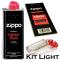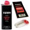 Lot comprenant un Flacon d'essence de marque Zippo, compatible avec tout type de briquet à essence. Contenance 125 ml. Facilement inflammable à conserver hors de portée des enfants. Un mèche de marque ZIPPO et un étui de 6 pierres de marque ZIPPPO