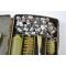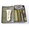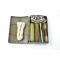 Boitier contenant une chaine de nettoyage, deux brosses, un pinceau et une burette d'huile vide.
