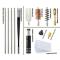 4 tiges en acier inoxydable, un adaptateur pour fusil, un manche en aluminium, un paquet de patchs, une brosse d’alésage, une brosse à double extrémité, une serpillière en coton, un protège-museau, une brosse à ressort et un porte-patch en laiton.