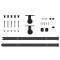 Kit de quincaillerie de porte coulissante 152,5 cm acier noirAvec notre kit de fixation pour portes coulissantes, vous pouvez ouvrir ou fermer les portes coulissantes de votre bureau, de votre chambre, de votre salon, etc. sans résistance et sans bruit. Matériau de qualité supérieure : fabriqués en acier enduit de poudre, les rails coulissants sont extrêmement robustes, durables et résistants. Design compact : l'ensemble de rails de porte coulissante s'adapte à presque tout décor grâce à son design compact et intemporel. Sûr et fiable : grâce aux roulements internes, vos portes peuvent glisser doucement et silencieusement. Des arrêts de porte sont également inclus pour empêcher le déraillement des rouleaux, tandis que les joints en caoutchouc amortiront la bosse des rouleaux et réduiront le bruit. Fonction stable : l'ensemble de quincaillerie pour porte de grange coulissante est équipé d'un guide au sol pour stabiliser le mouvement de la porte. Bon à savoir : La porte n'est pas incluse.