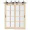 Kit de quincaillerie de porte coulissante 183 cm Acier NoirAvec ce kit de ferrures pour portes coulissantes, vous pouvez facilement installer des rails doubles pour que deux portes coulissent l'une devant l'autre et l'une derrière l'autre. Sûr et fiable : grâce aux roulements internes, vos portes peuvent glisser doucement et silencieusement. Des arrêts de porte sont également inclus pour empêcher le déraillement des rouleaux, tandis que les joints en caoutchouc amortiront la bosse des rouleaux et réduiront le bruit. Matériau robuste : l'acier enduit de poudre est solide, stable, durable et résistant à la corrosion, ce qui garantit des performances durables. Idéal pour les portes de grange doubles : lorsque l'espace mural est limité, le kit de support de contournement de porte de grange permet à deux portes de grange de coulisser indépendamment sur deux rails sans nécessiter d'espace supplémentaire. Installation facile : cet ensemble de quincaillerie pour porte coulissante peut être facilement installé sur la porte de grange à l'aide des accessoires de montage inclus, ce qui facilite l'installation. Large application : ce kit de support pour porte de grange permet de faire coulisser une porte sur une autre, ce qui le rend parfait pour les placards, les garde-manger ou même plusieurs ouvertures sur le même mur. Bon à savoir : La livraison comprend uniquement le kit de quincaillerie de la porte coulissante. La porte n'est pas incluse dans la livraison. ,
