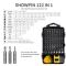 ?Le jeu de tournevis 122 dans 1 multifonctionnel de le 122 dans 1 inclut 98 embouts de tournevis, 3 embouts de tournevis de TorxTR, 1 poignée aimantée de conducteur, 1 magnétiseur/démagnétiseur, 1 axe d'extension flexible, 1 douille hexagonale pour perceuses sans fil, 1 pince à épiler antistatique, 2 pieds de biche en plastique, 3 outils de levier triangle ultra-fin et 6 normaux, 1 tampon magnétique micro vis, 1 broche carte SIM et 1 ventouse.
