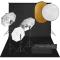 Kit de studio photo avec éclairage toile de fond et réflecteurCe kit de studio photo est un choix idéal pour photographier dans le studio ou sur place. Excellentes performances d'éclairage : en utilisant les lampes à lumière du jour avec une température de couleur de 5500 Kelvin, il est possible de capturer votre sujet d'une manière naturelle. Les trois parapluies offrent une lumière douce, ce qui évite les ombres agressives.Système de fond flexible : le système de fond flexible est facile à mettre en place et peut être combiné avec le fond qui n'a pas de coutures et dont les couleurs est inaltérable. Chaque support est doté d'un filetage standard de 1/4 pouce convenant aux appareils photo analogiques et numériques.Ensemble de réflecteurs utile : chaque réflecteur est livré avec différents panneaux de surface. Vous pouvez travailler avec différentes combinaisons pour obtenir des lumières plus chaudes ou plus froides pour la photographie d'intérieur et d'extérieur.Rangement facile : grâce au sac de transport inclus, le kit est facile à ranger et à transporter. Cet appareil n'est pas destiné à être utilisé par des personnes (y compris des enfants) dont les capacités physiques, sensorielles ou mentales sont réduites, ou qui manquent d'expérience et de connaissances, à moins qu'elles n'aient bénéficié d'une surveillance ou d'instructions concernant l'utilisation de l'appareil de la part d'une personne responsable de leur sécurité. Ce produit n'est pas un jouet. Ne laissez pas les enfants jouer avec l'appareil.